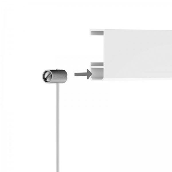 Die Schraubgleiter können NUR in die Bilderschiene cliprail seitlich eingeführt werden und sind dann unsichtbar.